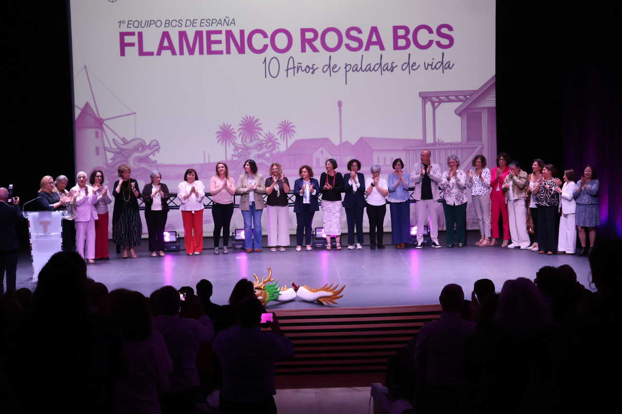 El Teatro Geli Albaladejo de San Pedro del Pinatar acogió la celebración del décimo aniversario del equipo de dragon boat BCS Flamenco Rosa, un acto conmemorativo que puso en valor diez años de trayectoria marcados por la superación, la unión y el compromiso con la salud y el deporte.