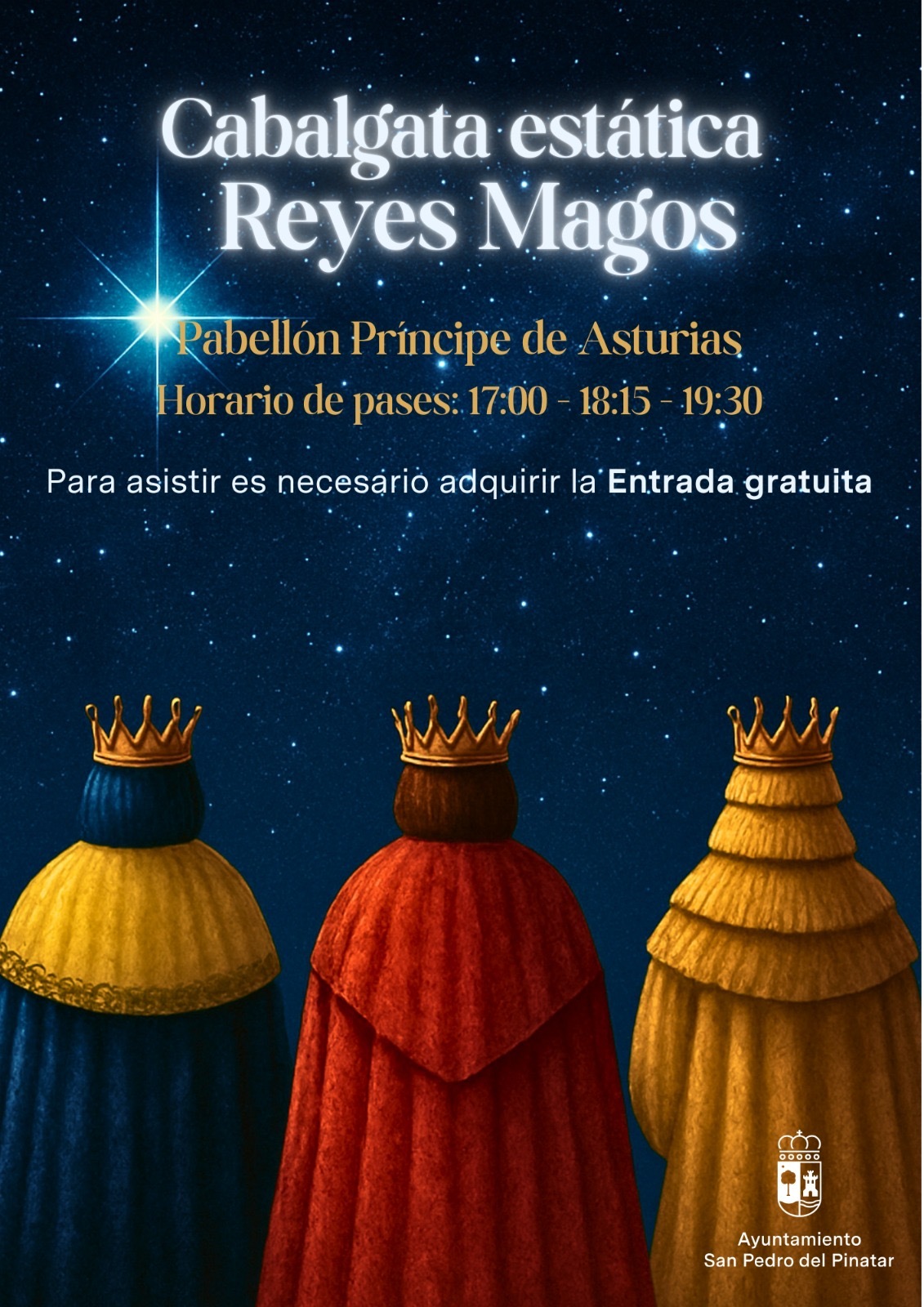 La tradicional Cabalgata de Reyes Magos, que cada año se celebra en la tarde del 5 de enero, desde la Lonja Pesquera de Lo Pagán hasta el Casino de San Pedro del Pinatar, se realizará este año de manera estática en el pabellón polideportivo Príncipe de Asturias, debido a las previsiones meteorológicas adversas.