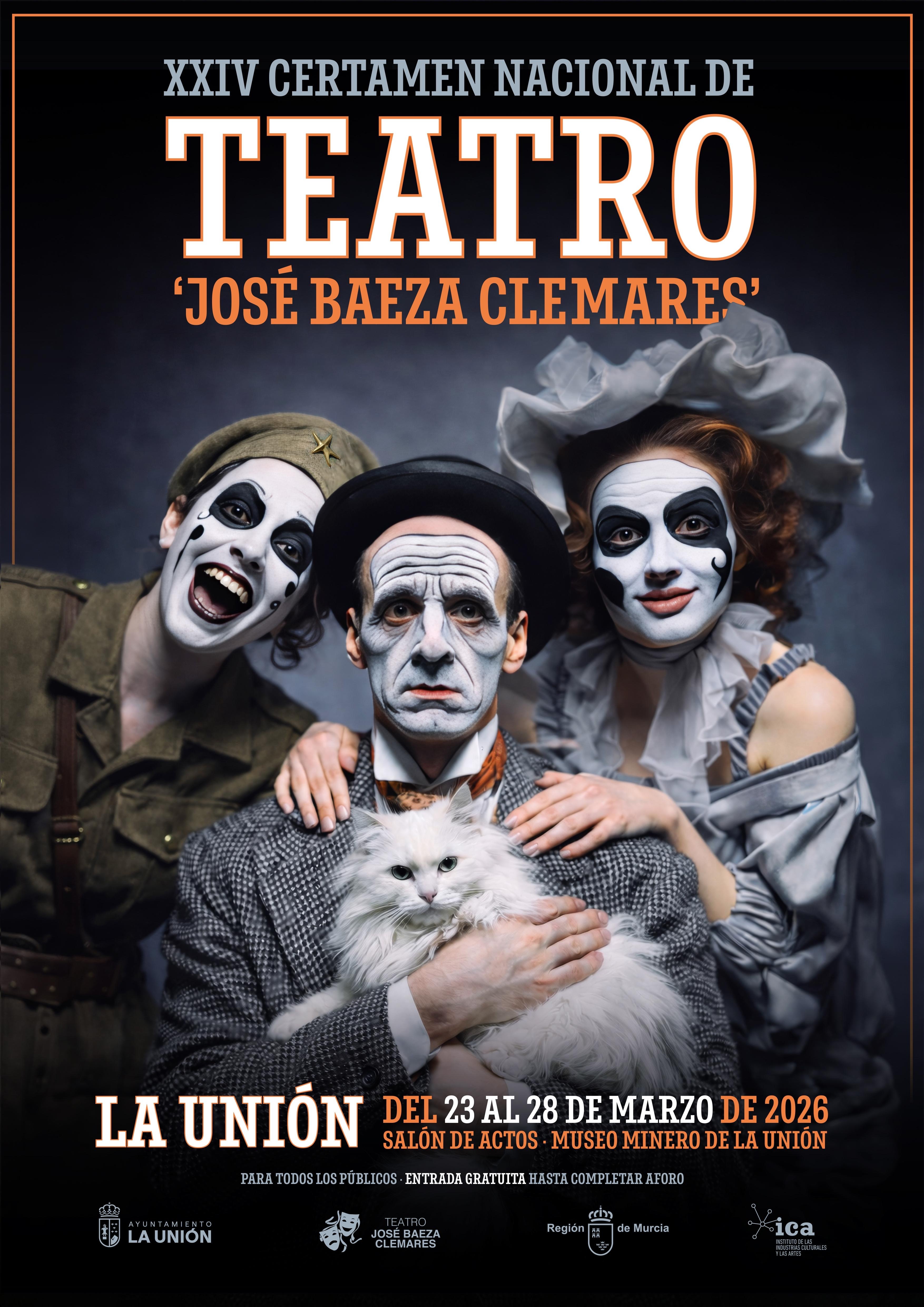 El Ayuntamiento de La Unión organiza una nueva edición del Certamen Nacional de Teatro “José Baeza Clemares”, que este año alcanza su XXIV edición y se celebrará del 23 al 28 de marzo de 2026 en el Salón de Actos del Museo Minero de La Unión.