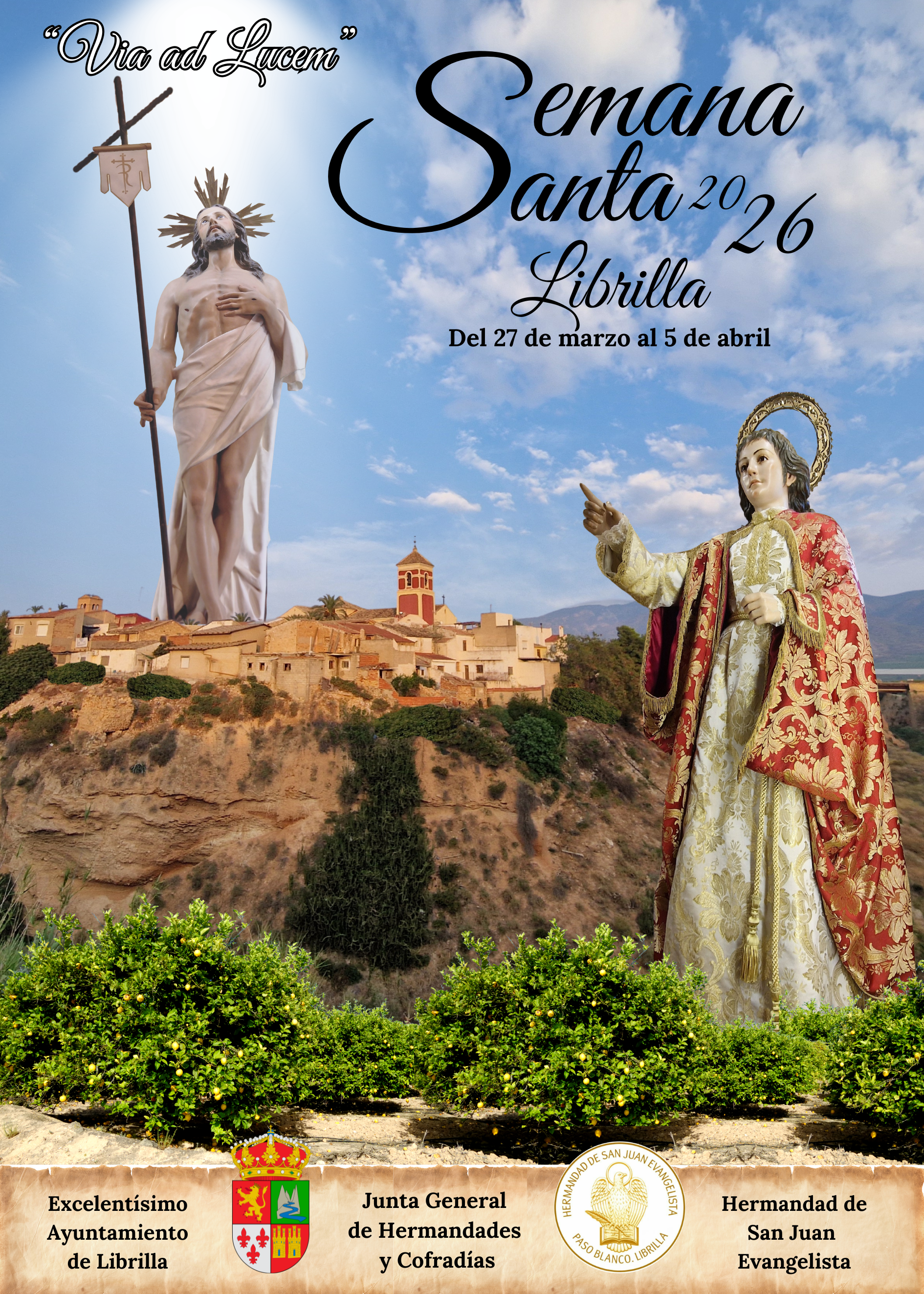 La Semana Santa de Librilla 2026 cuenta ya con su cartel oficial anunciador, una obra elaborada por Rafael Olmos que, bajo el lema “Via ad Lucem” (Camino hacia la luz), se configura como imagen representativa de la celebración y propone una composición de marcada simbología pascual vinculada a la identidad religiosa y patrimonial del municipio.