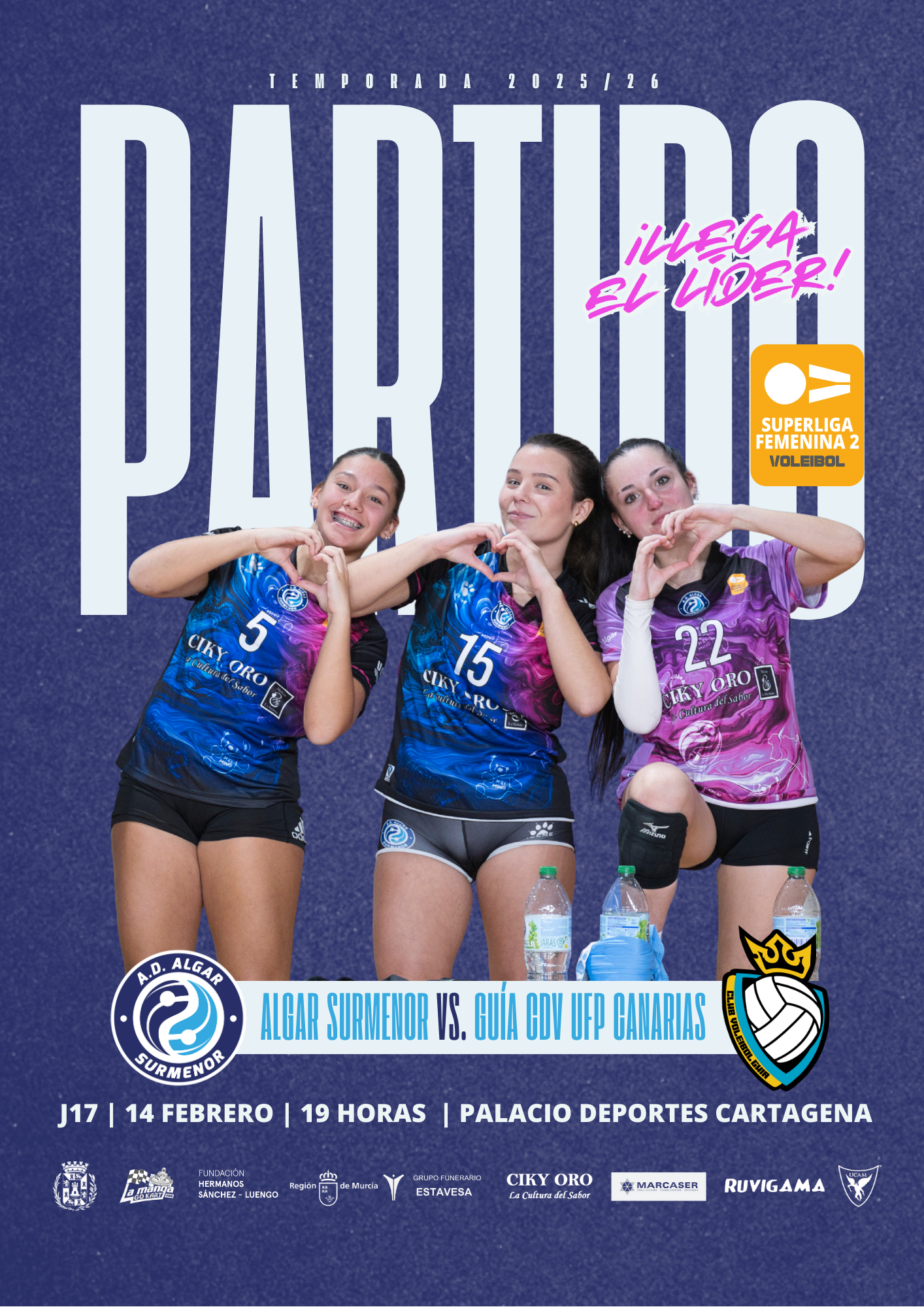 10 de febrero. El Algar Surmenor se enfrenta este sábado (19 horas) al Guía CDV UFP Canarias, líder del Grupo C de Superliga 2 y con una plantilla diseñada para el ascenso a Liga Iberdrola, máxima competición del voleibol español. Será la primera de las tres finales que afronta el equipo en casa, en su lucha por conseguir la permanencia.