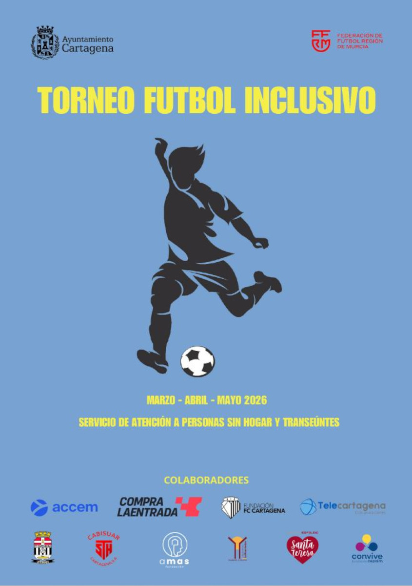 El Ayuntamiento de Cartagena ha presentado este miércoles, 26 de marzo, en el Palacio de Deportes, el I Torneo de Fútbol Inclusivo, una iniciativa impulsada desde el Área de Política Social, Igualdad y Familia en coordinación con el Servicio de Deportes, con el objetivo de fomentar la inclusión social y mejorar la calidad de vida de personas en situación de sin hogarismo o grave exclusión social.