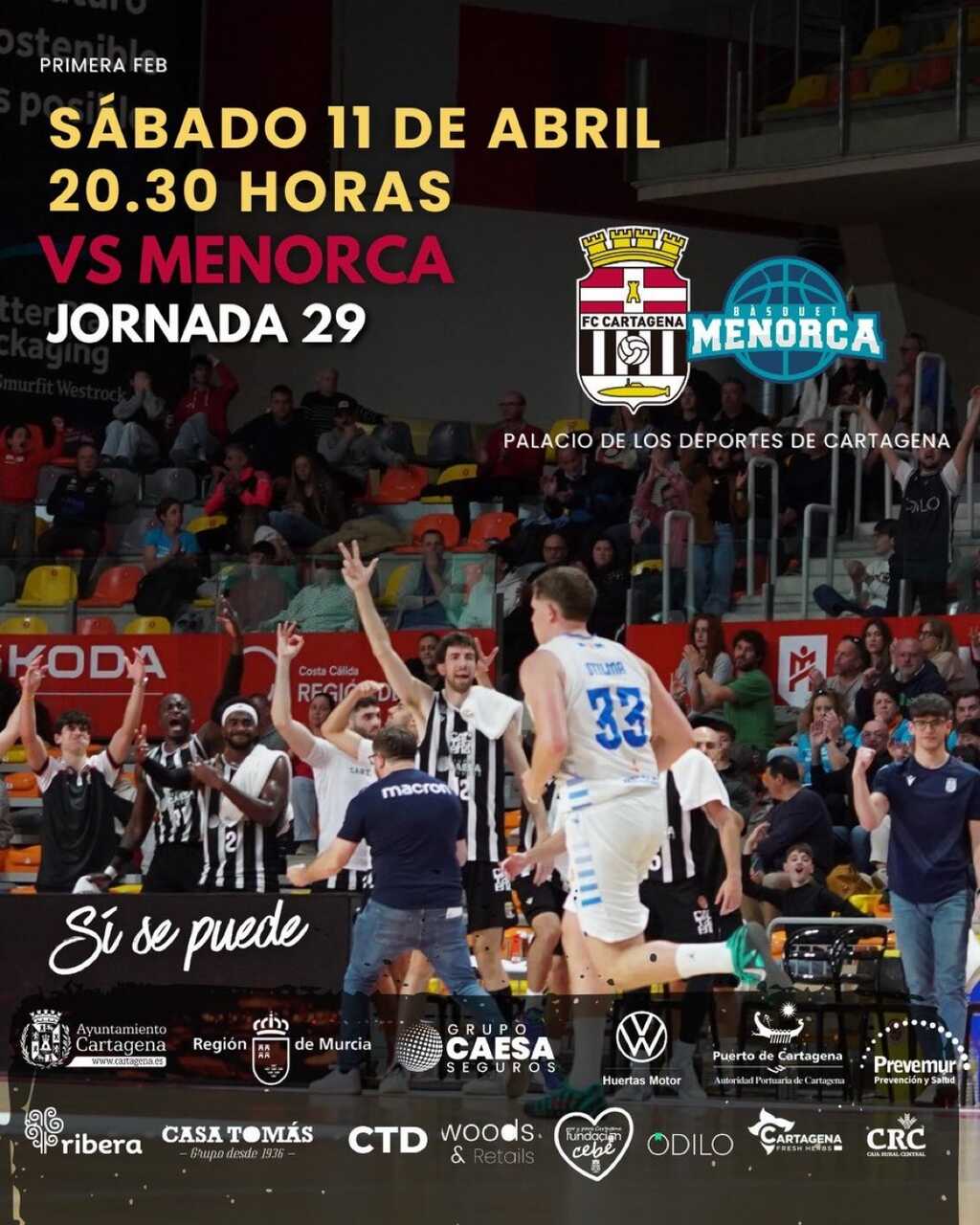 El próximo sábado 11 de abril, el FC Cartagena CB disputará un encuentro decisivo frente al Menorca Bàsquet en el Palacio de los Deportes de Cartagena, correspondiente a la jornada 29.