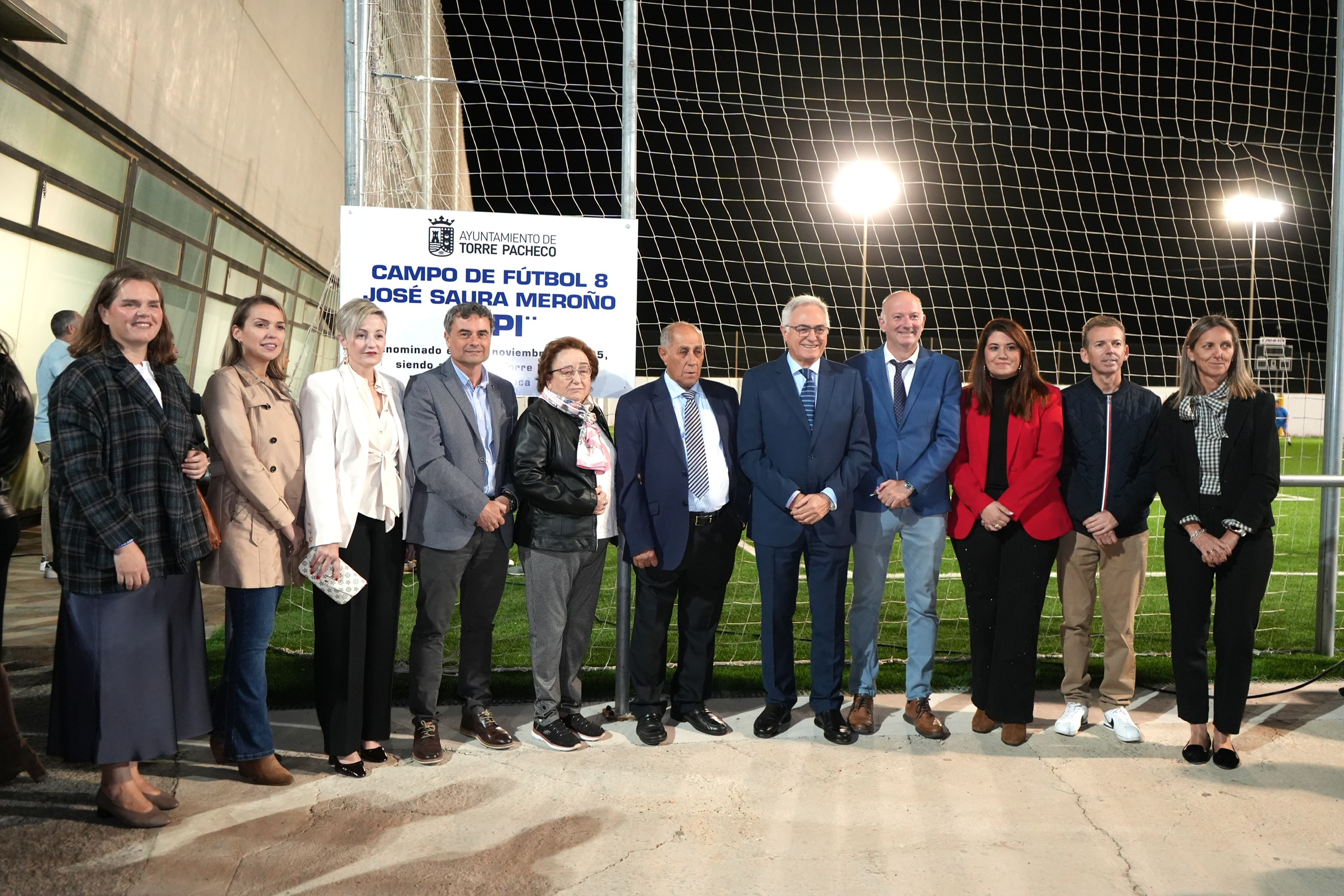 El pasado viernes, 7 de noviembre, cientos de vecinos, amigos y familiares se dieron cita en el nuevo campo de fútbol 8 de Torre Pacheco, ubicado en el polideportivo «Tatono», para presenciar el acto de denominación del espacio como «José Saura Meroño, ‘Pipi’». «José Saura no sólo está vinculado al deporte local, sino a un espíritu servicial al que siempre ha estado unido», destacaba el alcalde de Torre Pacheco, Pedro Ángel Roca, en el acto de denominación el pasado viernes.