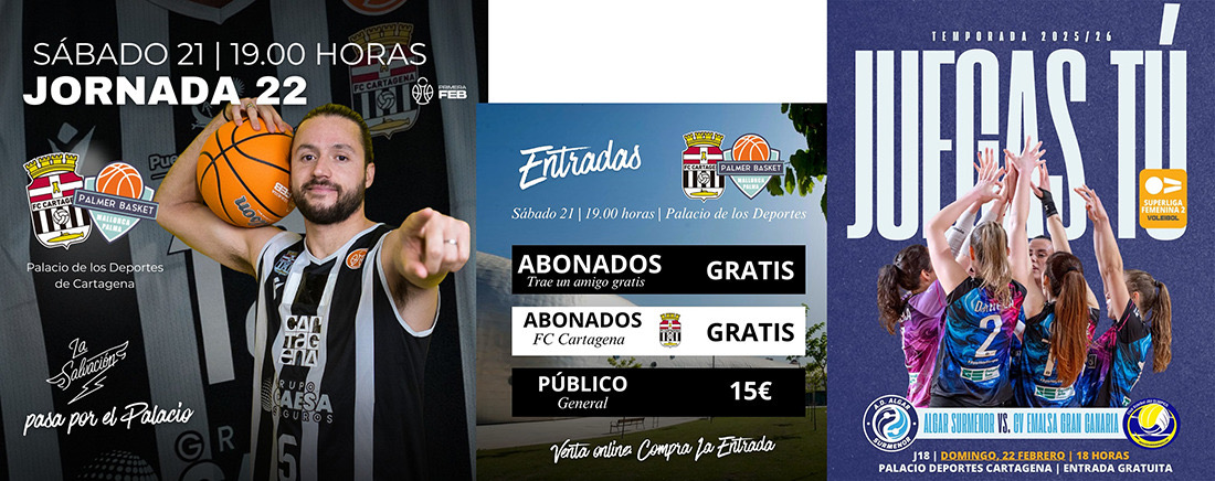 El Cebé Cartagena y la AD Algar Surmenor se enfrentan a rivales directos en las luchas que mantienen por evitar los descensos en la Primera FEB de baloncesto y en la Superliga Femenina 2 de voleibol. El club de la canasta lanza la promoción de que cada abonado puede llegar a un amigo gracias este sábado, mientras que la entidad algareña no cobra entrada en su partido del domingo.