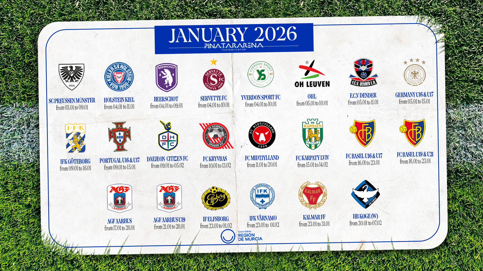 Clubes como el OHL de Bélgica, AGF de Dinamarca, el Kalmar sueco, el Preussen Münster alemán, el Kryvbasucraniano, el Daejeon coreano y las selecciones inferiores de Alemania y Portugal volverán a San Pedro del Pinatar un enero más para preparar la segunda parte de la temporada en sus respectivas competiciones.
