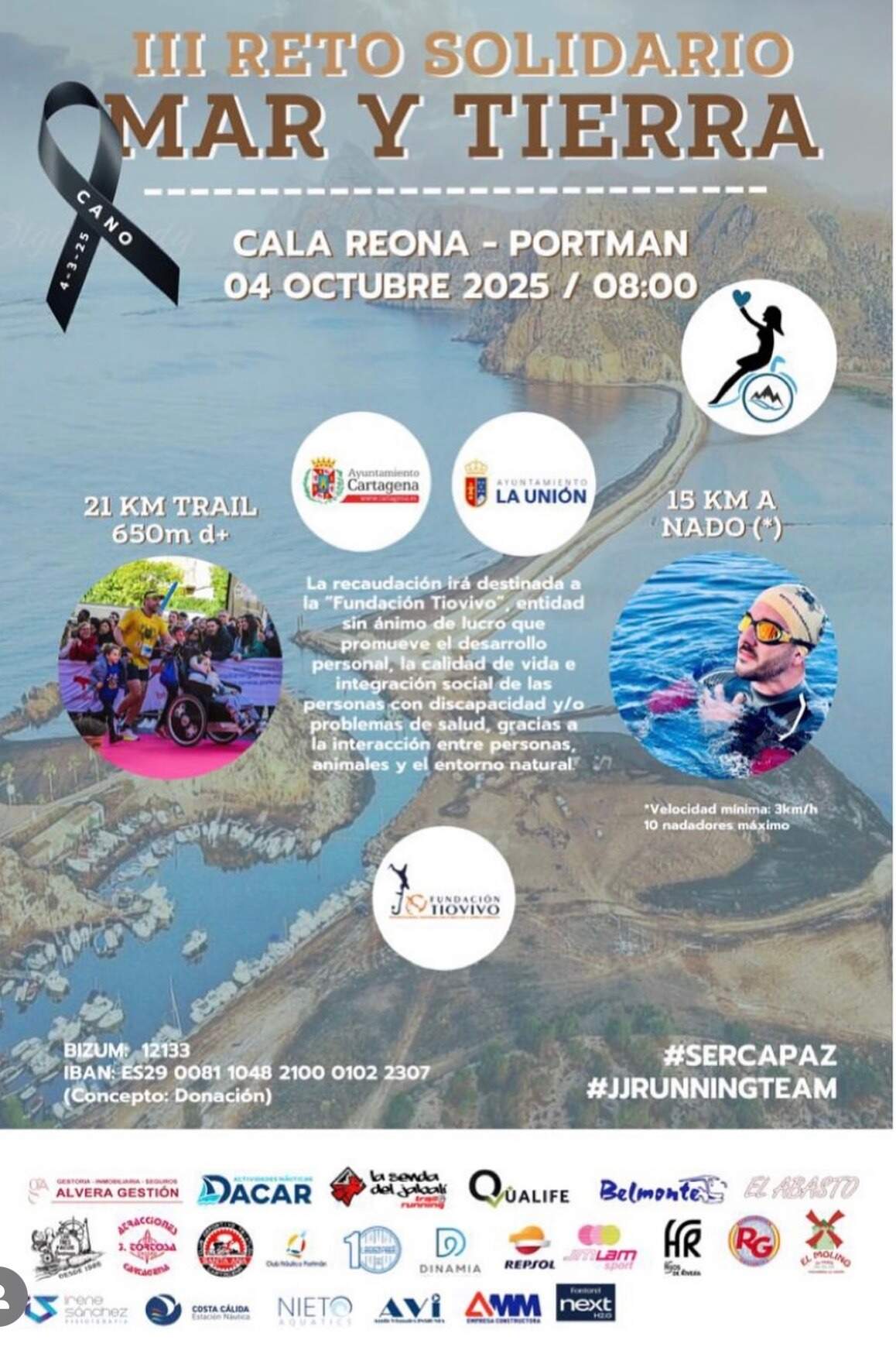 Portmán acoge este sábado el III reto solidario Mar y Tierra a beneficio de la Fundación Tiovivo