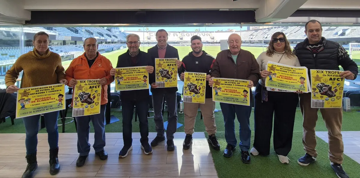 La Asociación de Clubes de Futbol de Cartagena y Comarca (AFCT) ha puesto en marcha con la colaboración del Ayuntamiento de Cartagena la XIX edición del Trofeo de Navidad de Futbol base, presentado esta semana, con un total de 12 categorías, desde Chupeta hasta Cadete y Féminas, que disputarán más de 300 partidos los días 27, 28, 29 y 30 de diciembre por los distintos campos de futbol del municipio.