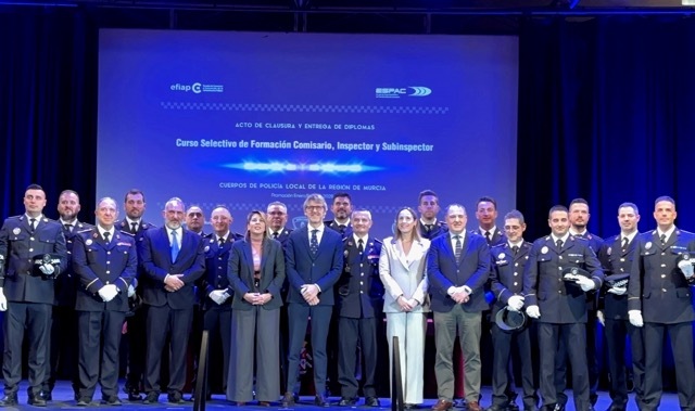 10.03.2026 La Comunidad ha formado a 35 nuevos mandos de Policía Local que van a pasar a reforzar las plantillas de estos cuerpos en ocho municipios de la Región. Se trata en concreto de 4 comisarios, 8 inspectores y 23 subinspectores, que a partir de ahora van a desarrollar sus nuevas funciones en Cartagena, Mazarrón, Molina de Segura, Abarán, Águilas, Alcantarilla, Lorca y Moratalla.