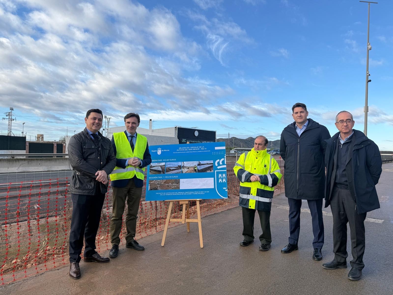 El consejero de Fomento e Infraestructuras, Jorge García Montoro, y el alcalde de San Javier, José Miguel Luengo, visitaron hoy las obras que comenzaron hace unas semanas con el objetivo de reforzar la seguridad vial y garantizar la conectividad de esta infraestructura estratégica durante episodios de lluvias intensas.
