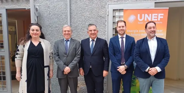 03.12.2025 El Gobierno regional está plenamente comprometido con el impulso y el desarrollo de la energía agrovoltaica, según remarcó el consejero de Medio Ambiente, Universidades, Investigación y Mar Menor, Juan María Vázquez, durante la apertura de una jornada sobre esta tecnología, que compatibiliza y mejora el uso agrícola del suelo con la instalación de diversas configuraciones de paneles solares, organizada por la patronal fotovoltaica UNEF en la Universidad de Murcia.