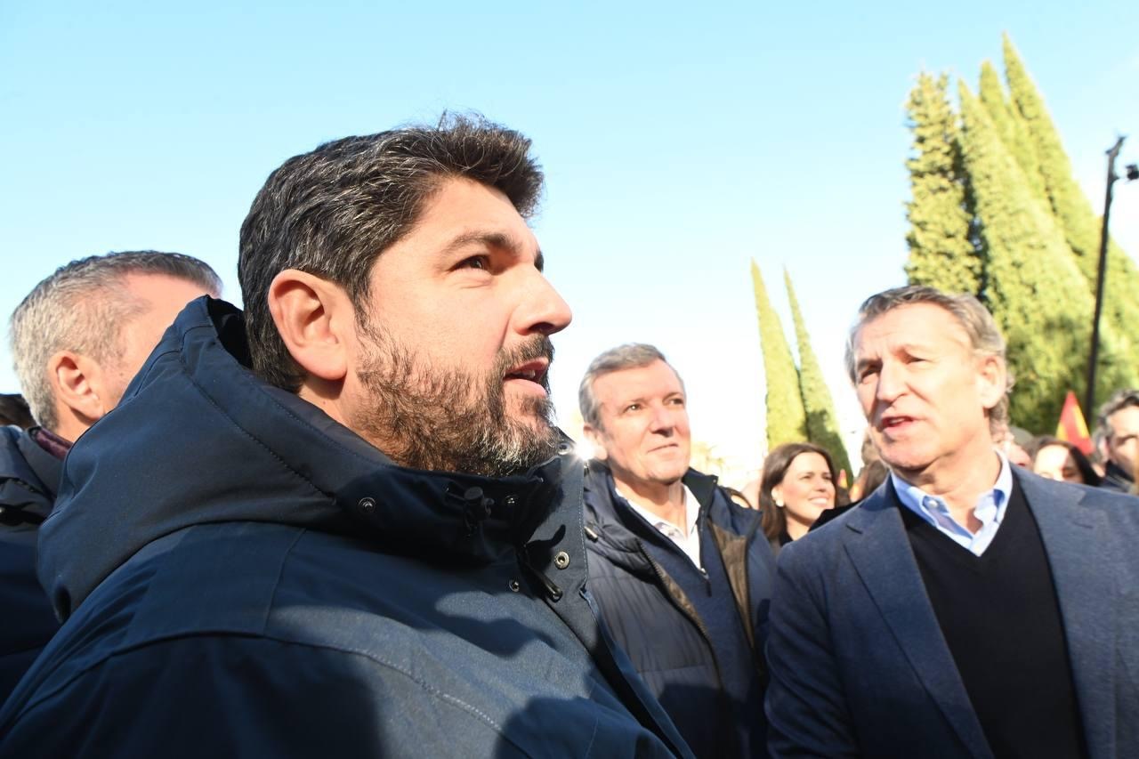 López Miras ha realizado estas declaraciones con motivo de su asistencia en Madrid a la concentración convocada por el Partido Popular bajo el lema “Efectivamente: ¿mafia o democracia?”.