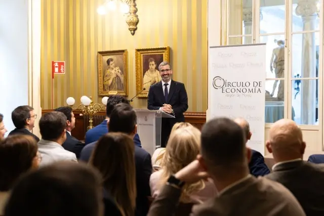 17 de febrero de 2026. El delegado del Gobierno ha protagonizado esta mañana un desayuno informativo organizado por el Círculo de Economía, donde ha defendido el compromiso y las inversiones del Gobierno de España en la Región de Murcia.