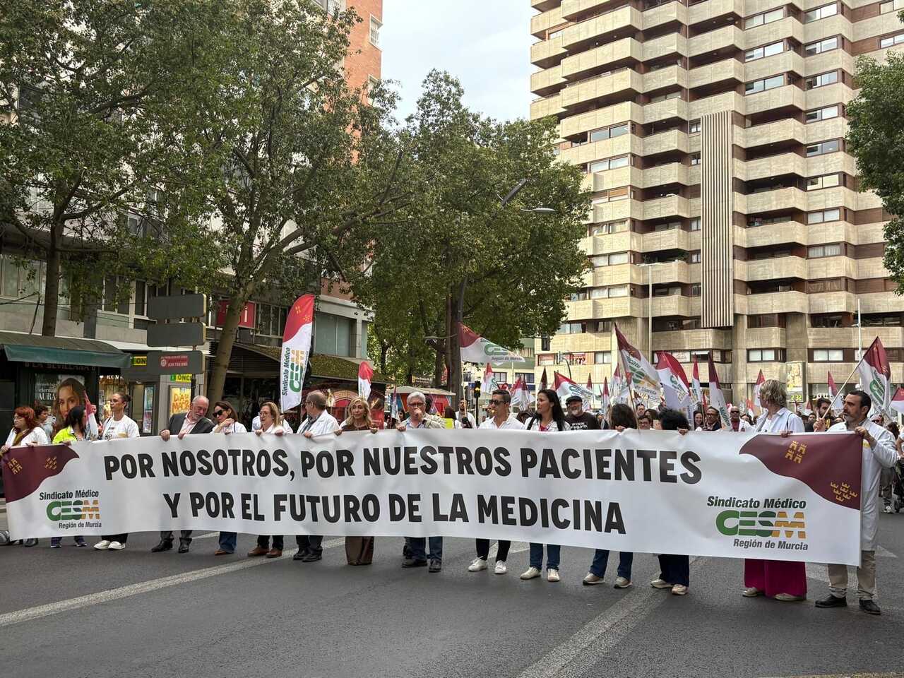 Los médicos vuelven a la calle en Murcia en la tercera semana de huelga nacional médica y facultativa del año para recordar que la profesión sigue en pie contra el borrador de Estatuto Marco