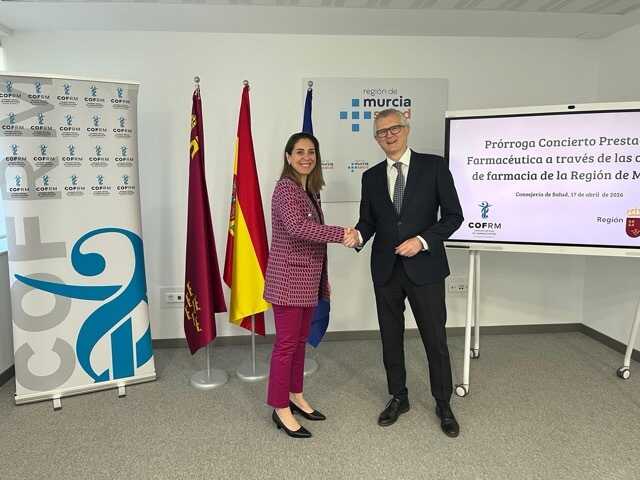 20.04.2025. La Comunidad renueva por cuatro años el concierto iniciado en 2022 entre el Servicio Murciano de Salud y el Colegio Oficial de Farmacéuticos, que regula las condiciones para la prestación farmacéutica a través de las oficinas de farmacia de la Región de Murcia.