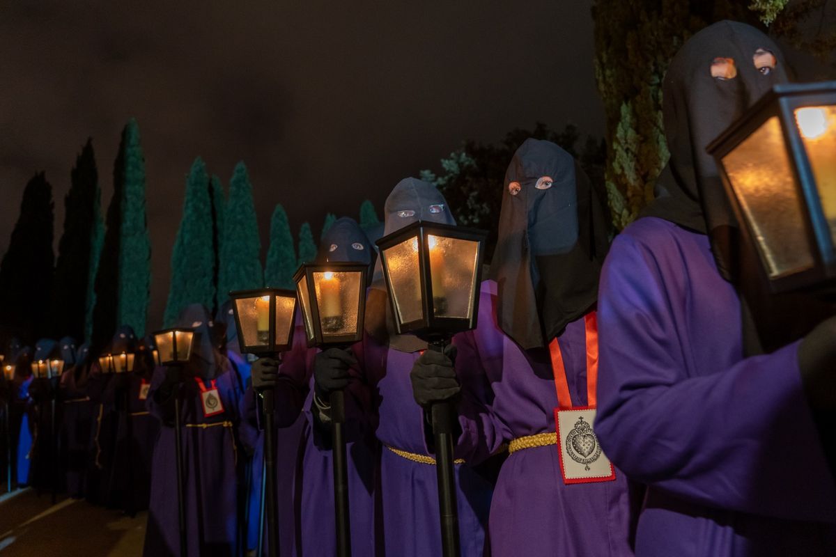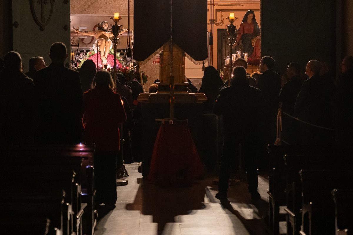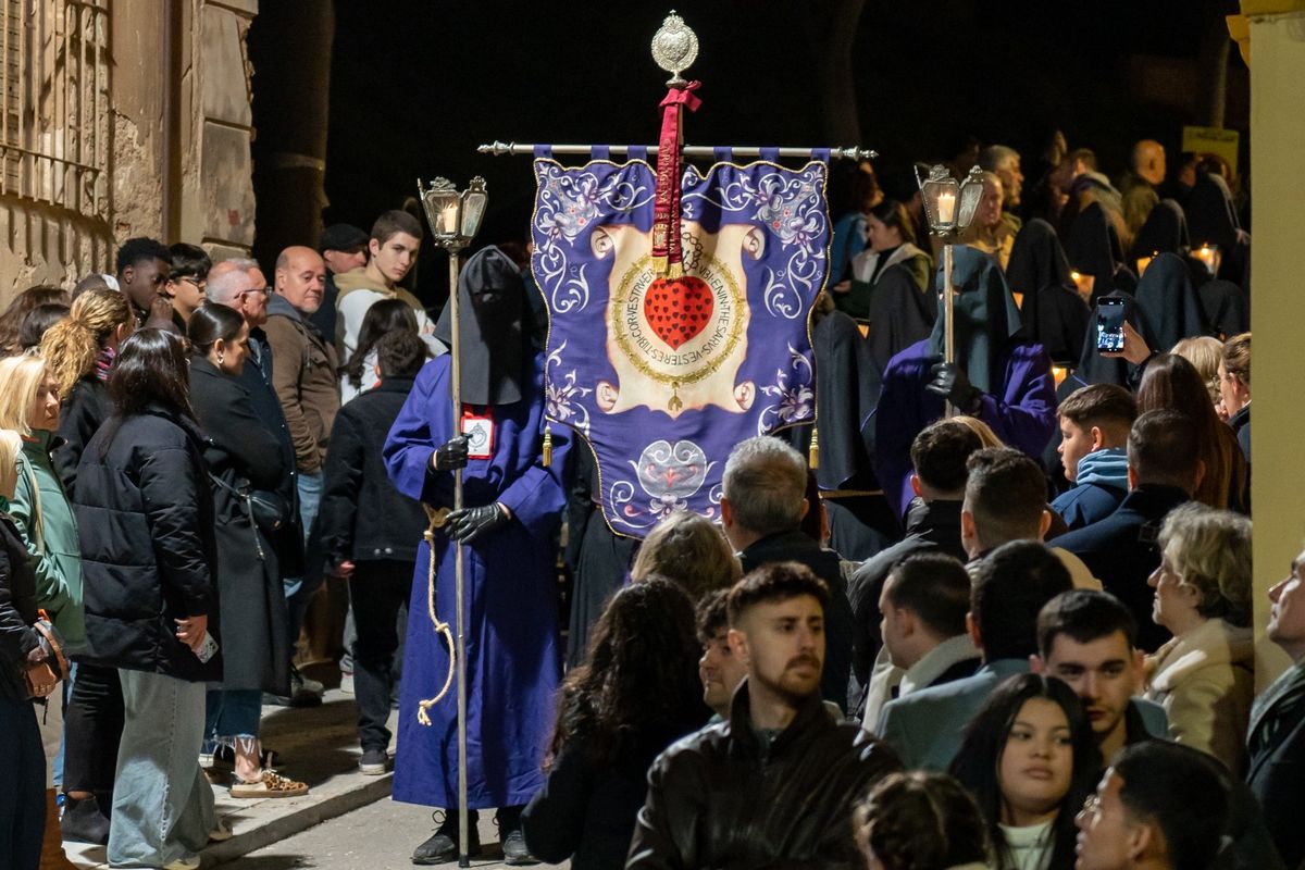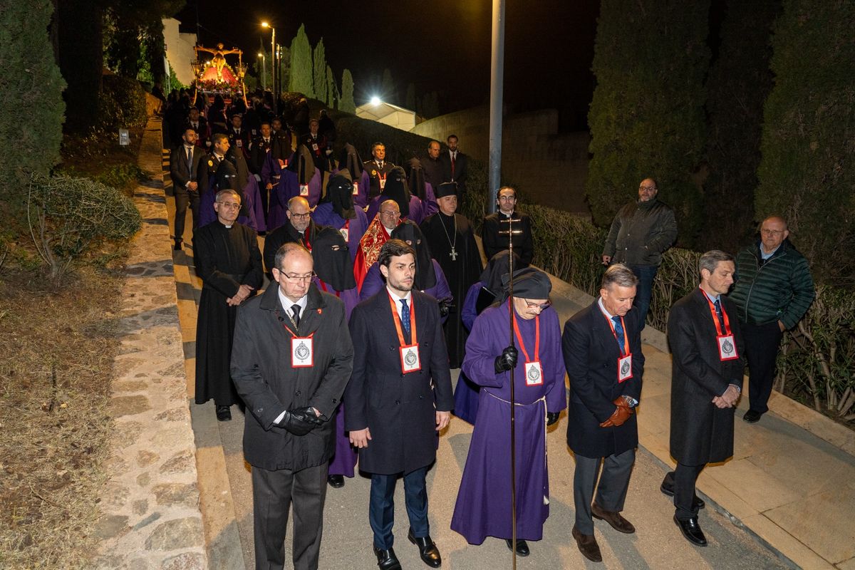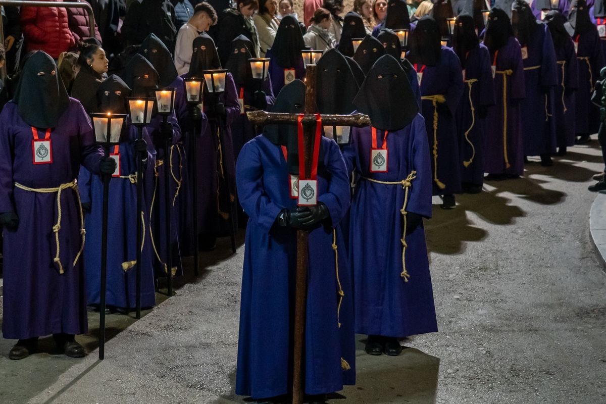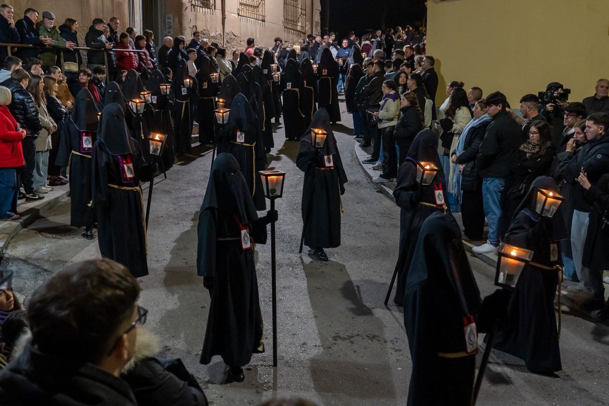 Envuelto en el rigor y recogimiento que caracteriza a esta procesión, y con el único acompañamiento de un tambor con sordina, los tronos del Cristo del Socorro y de la Virgen de la Soledad del Consuelo han recorrido las principales calles del casco histórico de la ciudad, encontrándolas abarrotadas de gente a su paso.