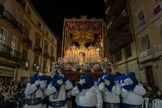 La imagen de Jesús de la Divina Misericordia se ha convertido este Viernes de Dolores en la primera al que se le tributan trovos cantados en lugar de saetas en su 'camino de la cruz'.