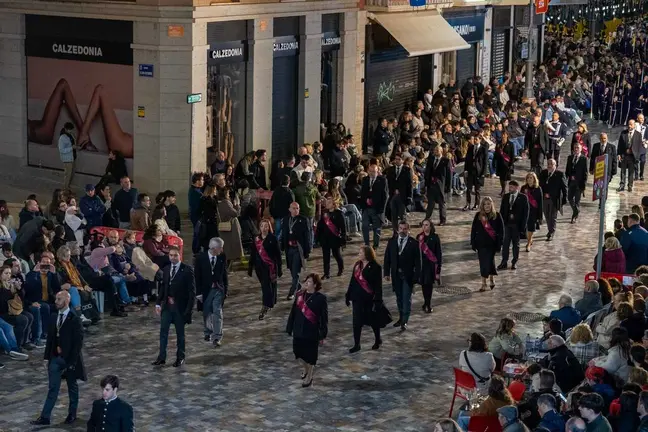 La parte final del cortejo está protagonizada por San Juan Evangelista y la Santísima Virgen del Amor Hermoso, acompañada por su agrupación de damas.
