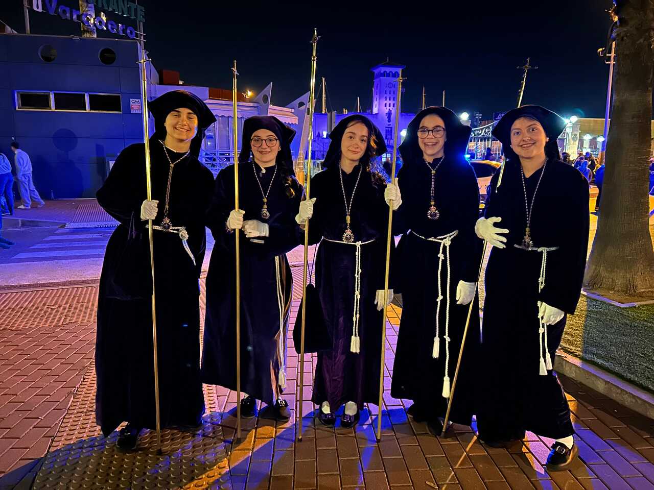 Horas antes, las tres habían asistido a la Procesión del Silencio desde el edificio de la Real Sociedad Económica de Amigos del País de Cartagena, donde pudieron seguir uno de los actos más solemnes de la Semana Santa cartagenera.