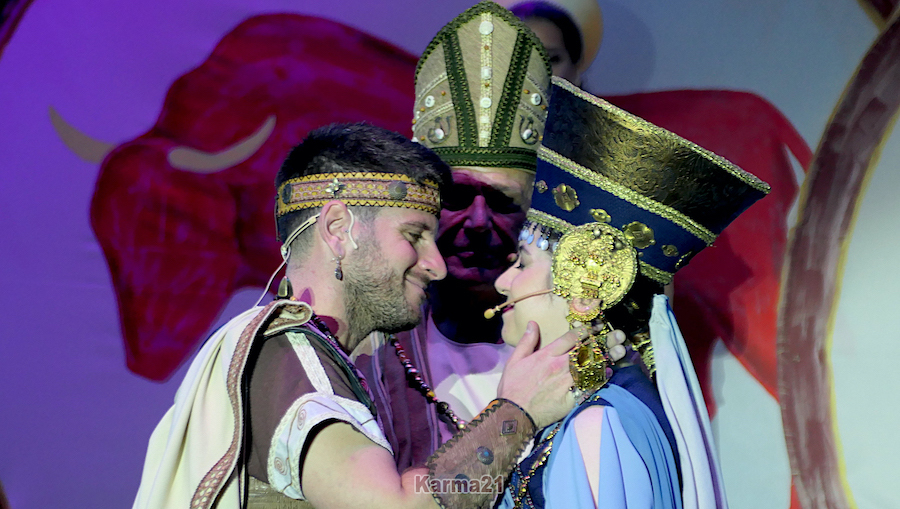 Un pacto para un matrimonio de estado que vinculara al pueblo cartaginés con el íbero acabó siendo una bonita historia de amor entre el estratega y la princesa de Cástulo. La representación desbordó anoche el aforo del puerto de Cartagena en la cuarta jornada de las Fiestas de Carthagineses y Romanos. Fotos KARMA21