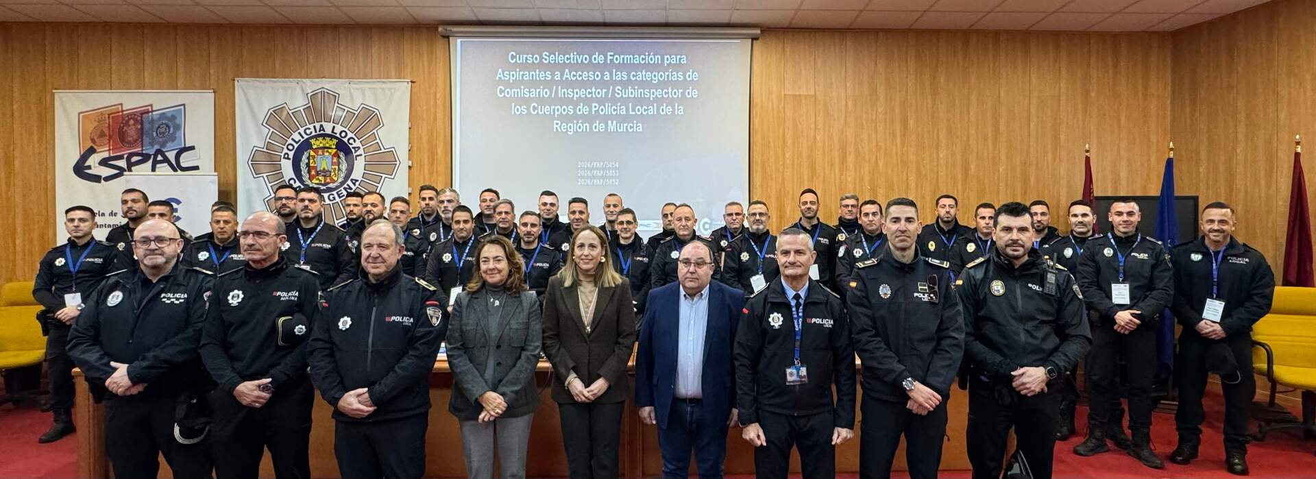 En esta primera edición de la formación selectiva prevista para 2026 participan 35 aspirantes procedentes de 8 ayuntamientos de la Región: 4 comisarios (Cartagena), 8 inspectores (Cartagena, Mazarrón, Molina de Segura) y 23 subinspectores (Abarán, Águilas, Alcantarilla, Cartagena, Lorca, Mazarrón, Molina de Segura, Moratalla).