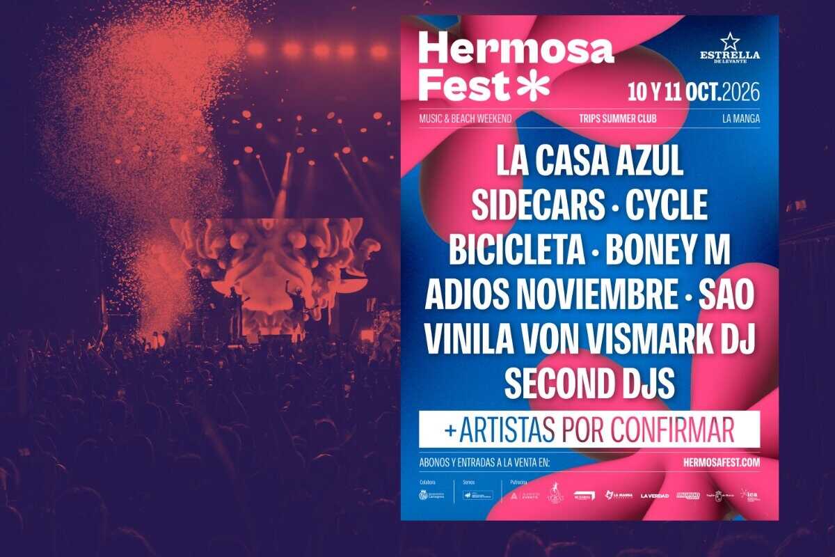 El festival Hermosa Fest celebra su próxima edición los días 10 y 11 de octubre de 2026. El evento, que cuenta con el patrocinio del Ayuntamiento de Cartagena, contará, tras su cancelación el pasado año por la dana Alice, con un amplio cartel de artistas que actuarán en TRIPS SUMMER CLUB de La Manga. Los abonos y la información completa del festival están disponibles en www.hermosafest.com