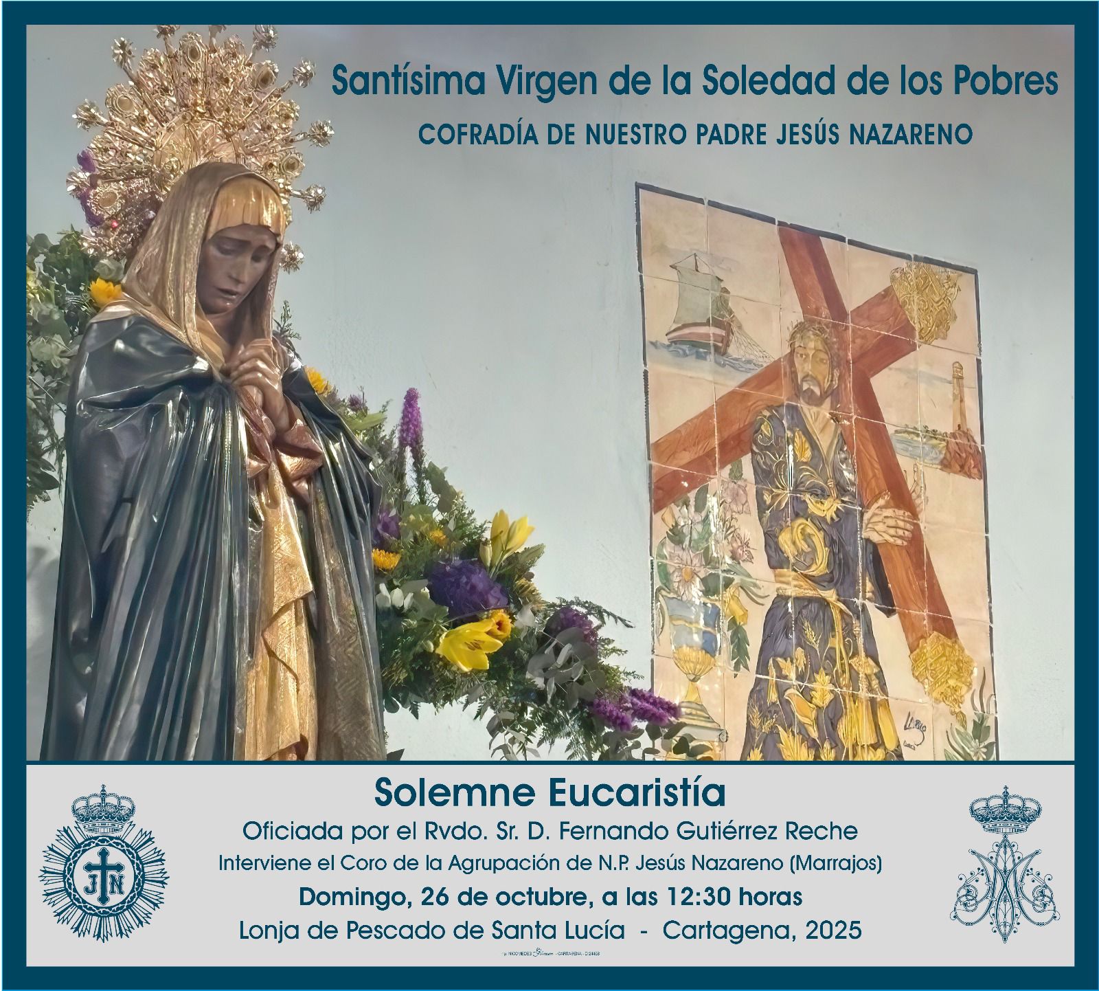 El próximo Domingo 26 de Octubre a las 12.30 horas se celebrará la misa en honor a la Santísima Virgen de la Soledad de los Pobres en la lonja de pescadores de Santa Lucía.