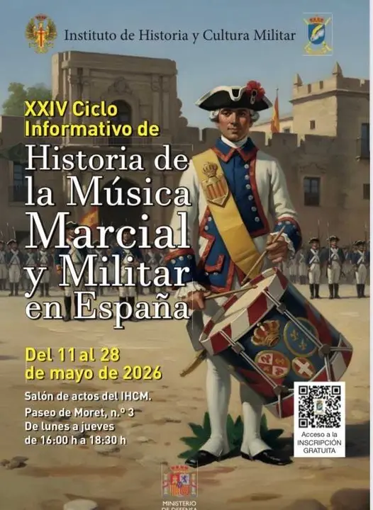El Instituto de Historia y Cultura Militar ha convocado el XXIV Ciclo Informativo de Historia de la Música Marcial y Militar en España, una actividad divulgativa de libre acceso dirigida tanto a militares como a civiles y que se desarrollará entre el 11 y el 28 de mayo, en horario de tarde y con posibilidad de seguirlo a distancia.