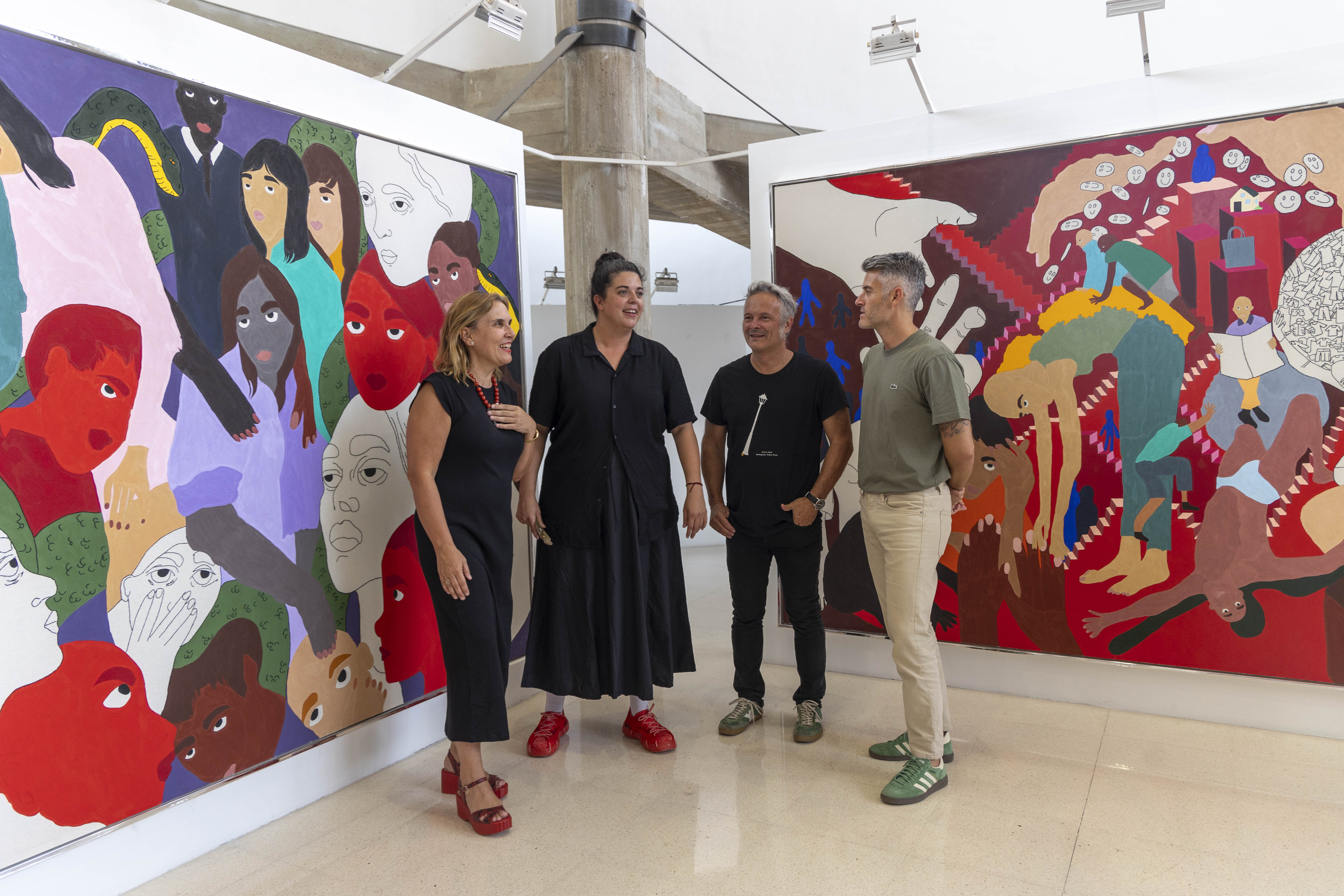 Esta muestra en el Centro Cultural Ramón Alonso Luzzy reúne una selección de grandes formatos y un retablo que sintetizan de una manera poderosamente colorista el universo visual de Ela Fidalgo.