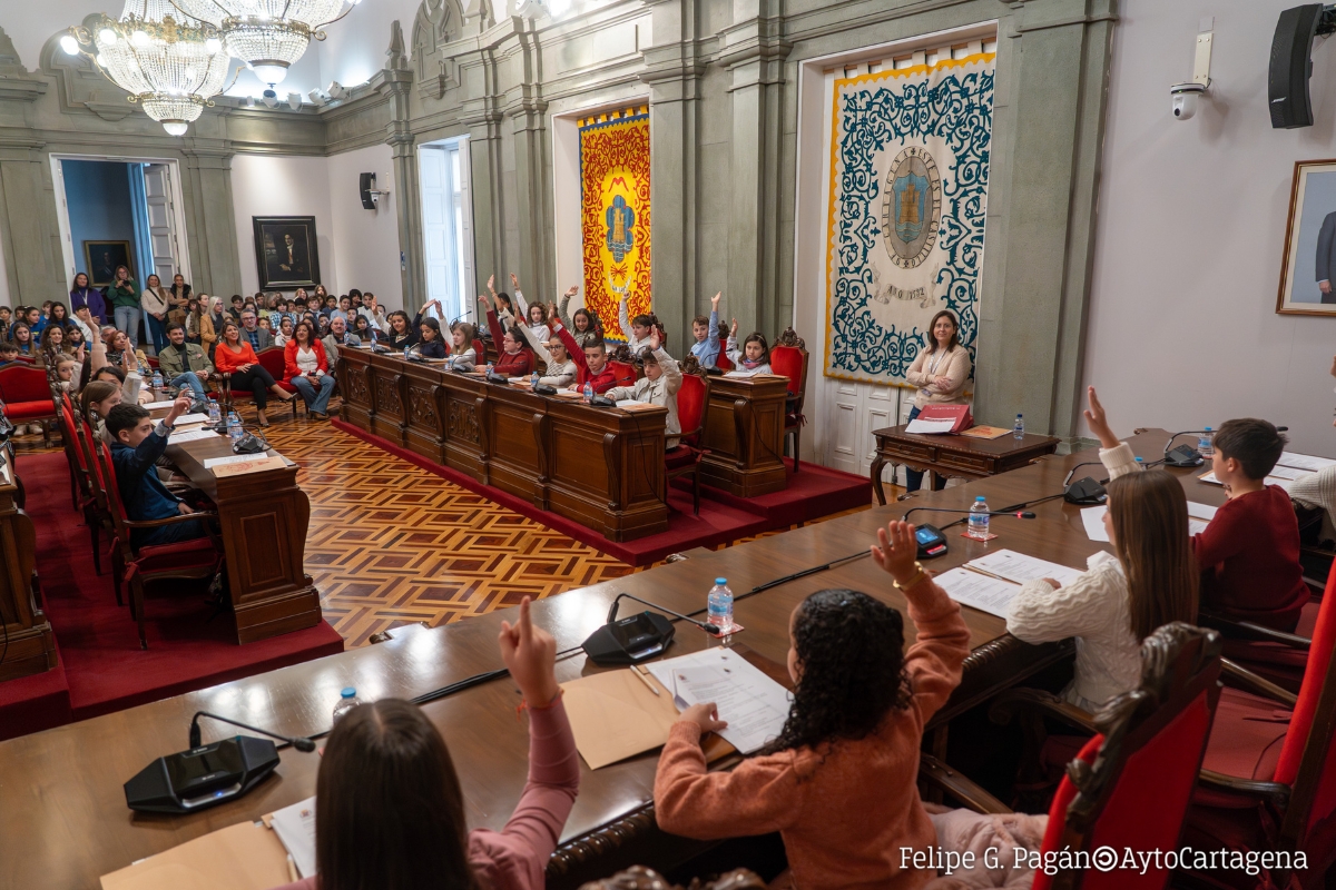 Escolares de Cartagena celebran un pleno sobre el derecho a la intimidad por el aniversario de la Constitución