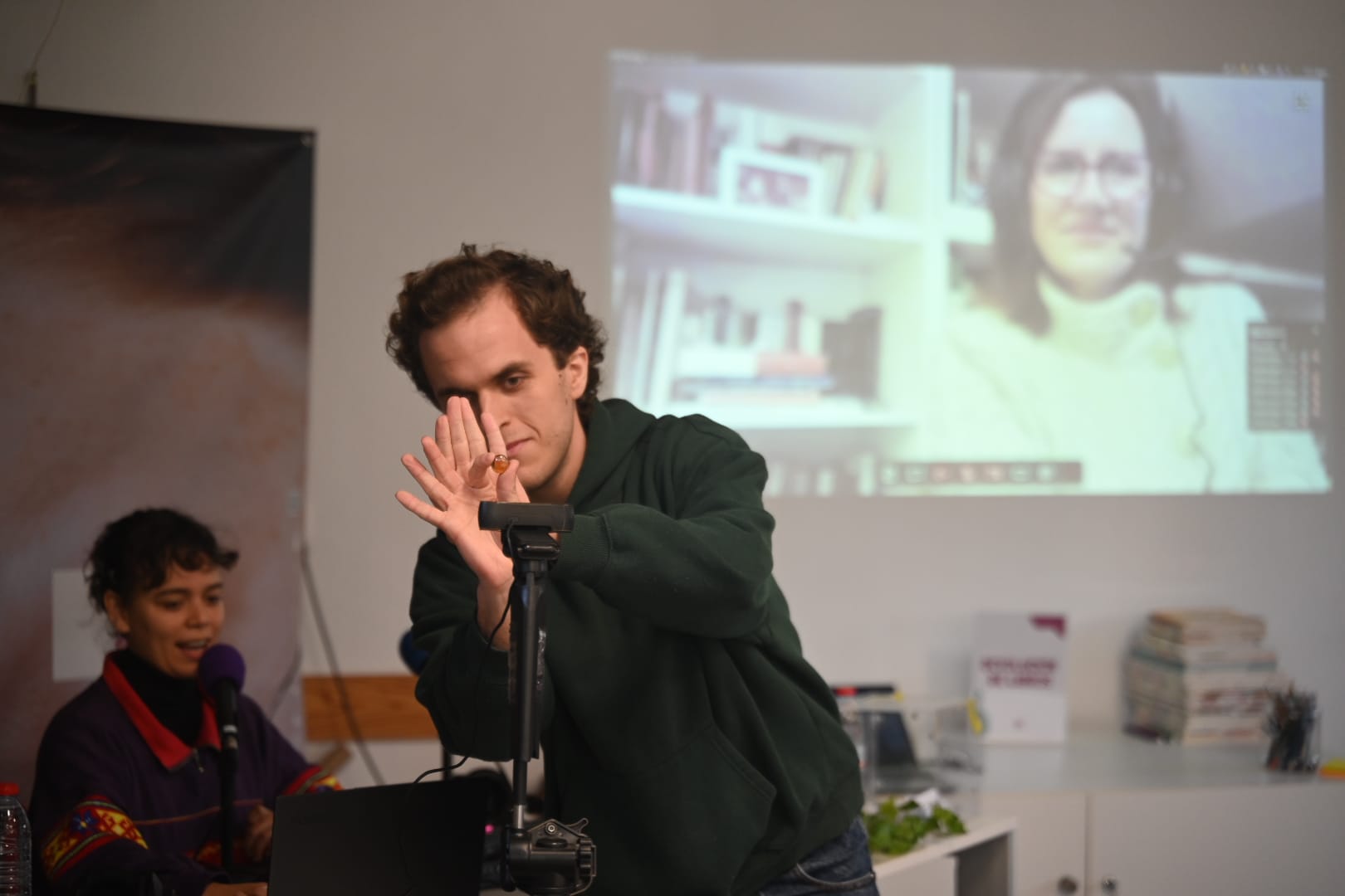 La sesión ha contado con la conducción de Estela Santos y Guillermo Carrasco, responsables de dinamizar el encuentro y conductores del programa de podcast, guiando la conversación en torno al proceso de creación, los temas centrales de la obra y la experiencia lectora.