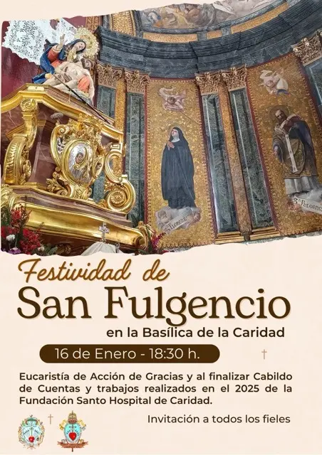 Como es tradicional en la fiesta del Co-Patron de la Ciudad de Cartagena se celebrará en la Basílica de la Caridad a las 18,30 h una Eucaristía de Acción de Gracias por los más de 300 años de amor al prójimo en esta obra de Caridad de toda Cartagena bajo la protección de la Santísima Virgen. Al terminar la Santa Misa se presentará a todos los asistentes el balance de cuentas y actividades realizados por la Junta de Gobierno en el año 2025 en el Hospital y Basílica. Se finalizará con un recuerdo a los difuntos, oración de acción de gracias y salve a la Santísima Virgen de la Caridad. La Junta de HH del Santo y Real Hospital de Caridad invita a todos los fieles a participar de esta celebración de acción de gracias y de amor a la Santísima Virgen de la Caridad, Reina y Madre de Cartagena.````````````````````````>>>>>>>>>>