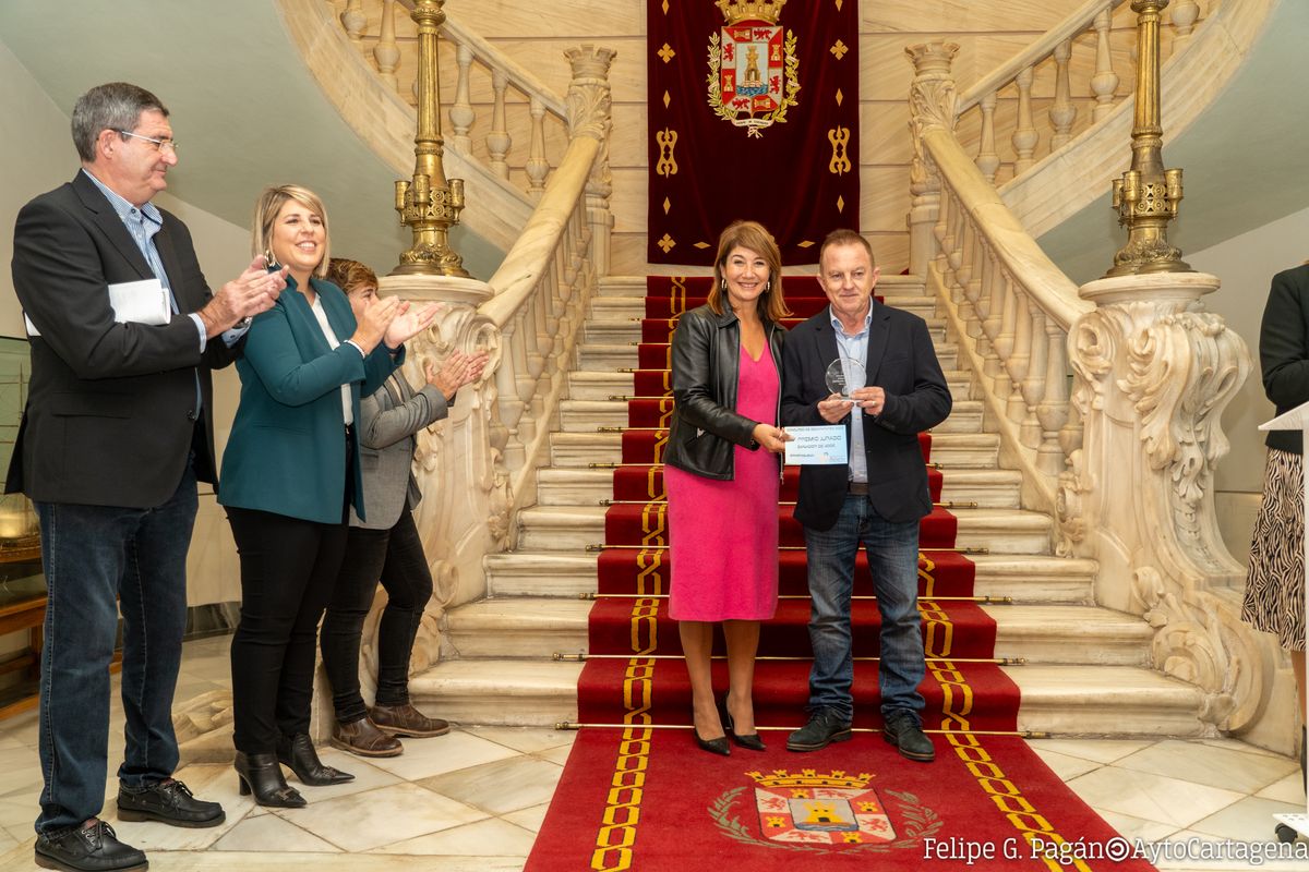 Para finalizar el acto se ha hecho entrega a los miembros del jurado de una plaza conmemorativa "por su dedicación durante toda una vida al comercio de Cartagena", ha indicado el presidente del CCA. Los homenajeados han sido María Ruíz Martínez, propietaria de Papelería Centro; José Madrid Méndez, propietario de Cestería Madrid; Jacinto Miranda García, propietario de Selecciones JG; y a título póstumo, Ginés Pérez Martínez, propietario de Modas Gena.
