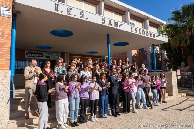 El instituto San Isidoro de Los Dolores es el primero de Cartagena en contar con un Punto Violeta contra la violencia de género por medio de una iniciativa estatal. La concejal de Política Social e Igualdad, Cristina Mora, ha asistido a la presentación de este nuevo servicio a disposición de la comunidad educativa.
