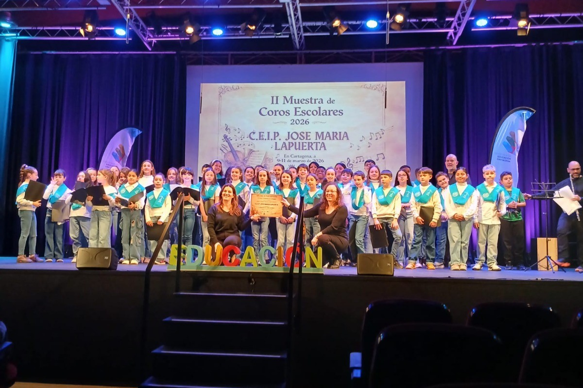 Más de 550 estudiantes de diez centros educativos de Cartagena mostraron su talento en la II Muestra de Coros Escolares, organizada por Educación del Ayuntamiento. El evento se ha celebrado los días 9 y 11 de marzo con alumnos de primaria, secundaria y bachillerato.