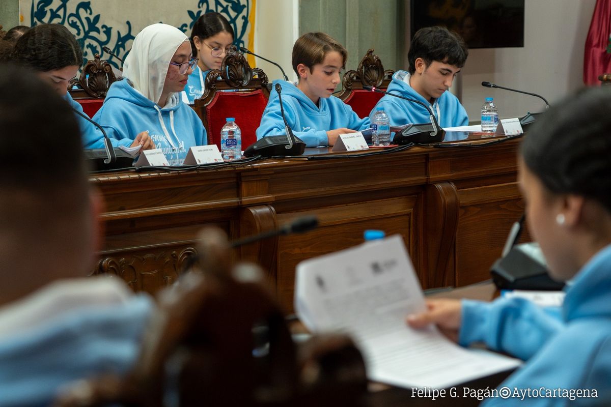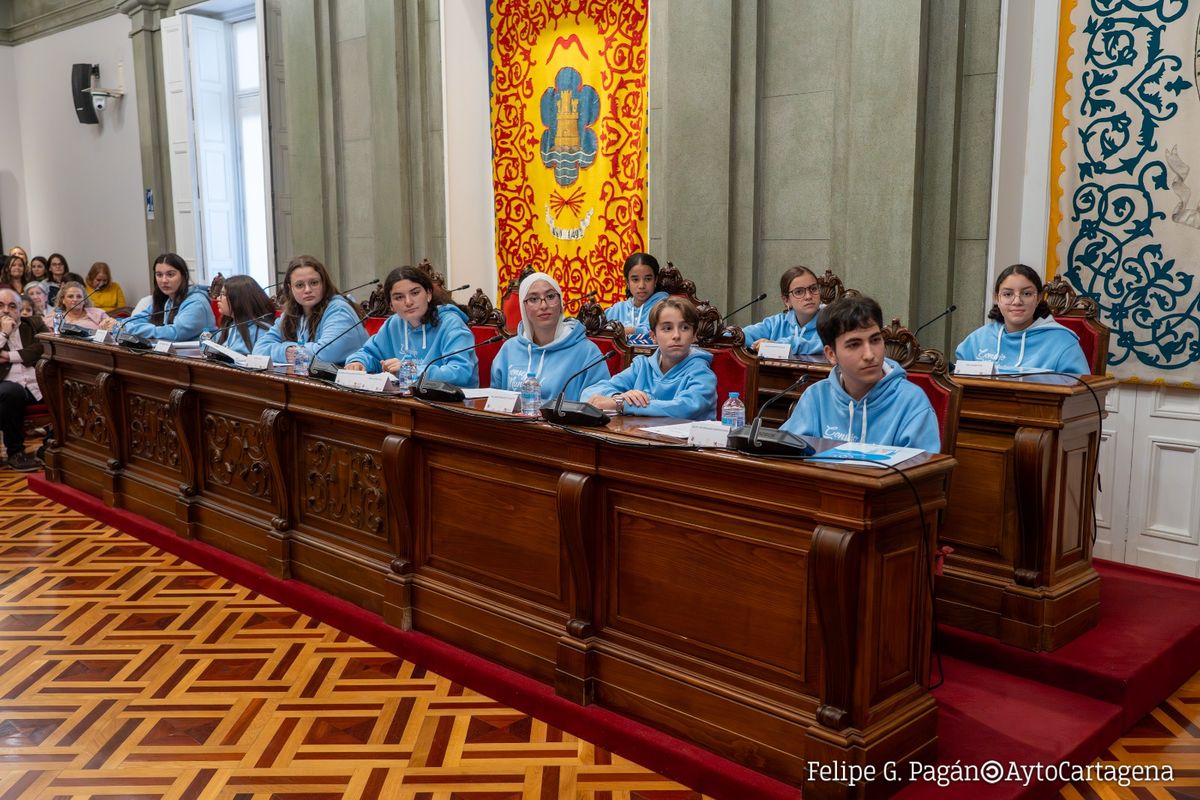 El Ayuntamiento de Cartagena ha celebrado el Pleno Infantil Municipal con motivo del Día Mundial de los Derechos de la Infancia (20N), un encuentro en el que los niños, niñas y adolescentes del Consejo Municipal de Infancia y Adolescencia presentaron un total de 19 propuestas, bajo el lema "Entornos sanos, seguros y protectores", para mejorar la ciudad, basándose en su experiencia diaria en centros educativos y espacios públicos.
