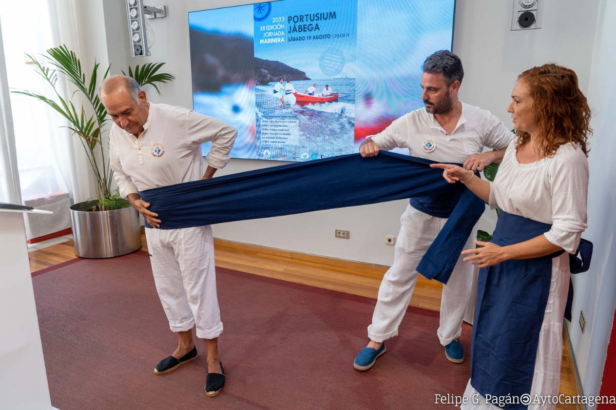 La décimo segunda edición de esta Portusium Jábega ha sido presentada en el Palacio Consistorial de Cartagena por la edil delegada de Turismo, Belén Romero; el organizador de la Portusium Jábega, Alberto Navarro; el presidente de la Asociación de Vecinos de El Portús, Luis Saura; y la presidenta de la Asociación de Mujeres de El Portús, Toñi Navarro. También ha asistido la edil de la corporación Isabel Andreu.