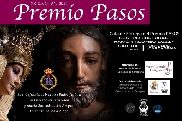 ación Mujeres Cofrades de Cartagena celebra este sábado 4 de octubre, a las 12:30 horas, en el Centro Cultural Ramón Alonso Luzzy, la XX Gala del Premio PASOS, un galardón que cumple 20 años como referente nacional en la defensa de la igualdad en el ámbito cofrade.