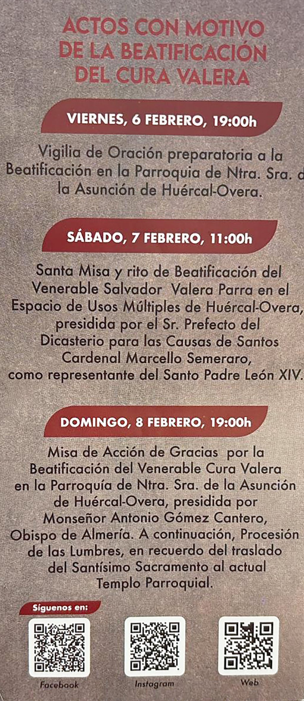 En la beatificación, la Virgen del Río representa a la diócesis de Almería, a la que actualmente pertenece Huércal-Overa y en cuyo territorio se celebra este histórico acontecimiento eclesial.
