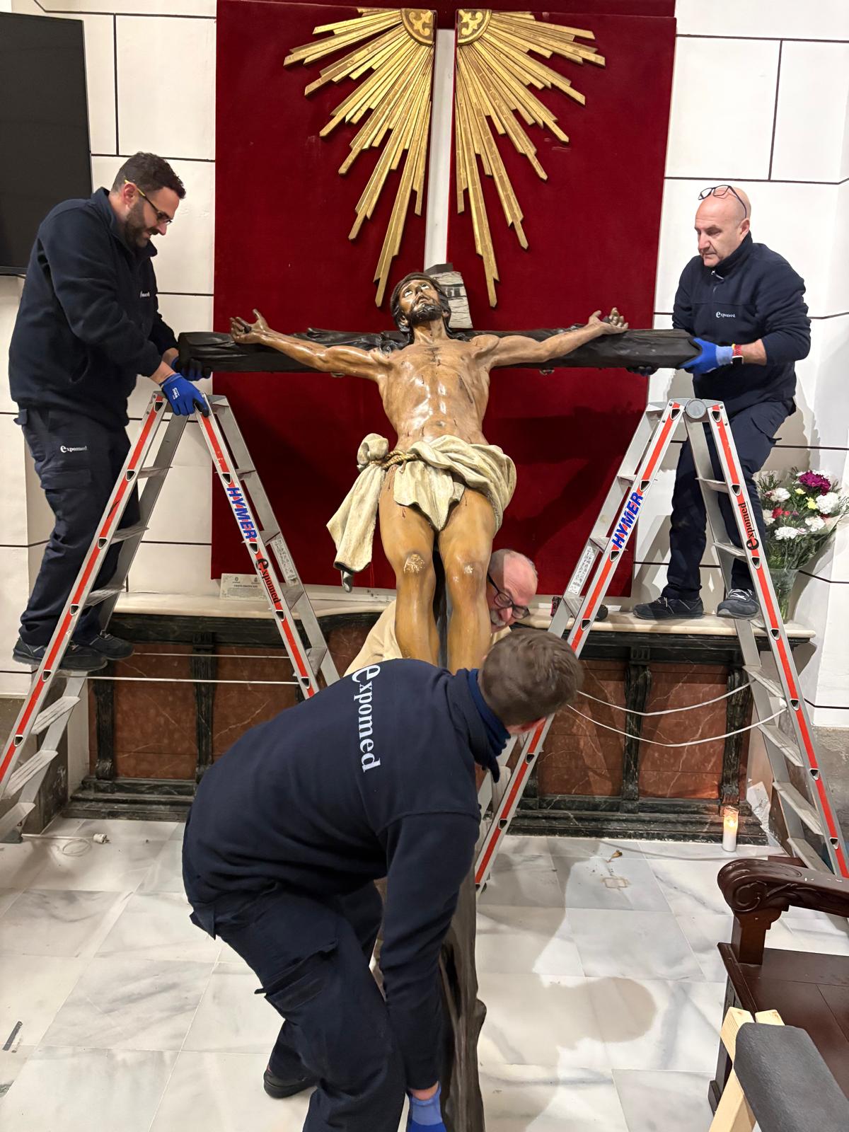 El Santísimo Cristo de la Agonía que esta en la Basílica de Santísima Virgen de la Caridad viaja a Huércal-Overa, donde el sábado a las 11,00 h se transmitirá la celebración de la Eucaristía por 13 TV