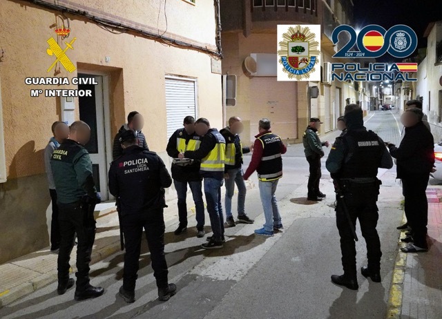 Murcia, 19 de diciembre de 2025. La Guardia Civil de la Región de Murcia, la Policía Nacional y la Policía Local de Santomera han desarrollado de forma conjunta una actuación en el municipio santomerano dirigido a detectar posibles fraudes en el empadronamiento irregular de ciudadanos extranjeros, que ha culminado con la detención de 14 personas por no tener regularizada su estancia en territorio nacional. Además, se han detectado 51 infracciones administrativas a la Ley de Extranjería.