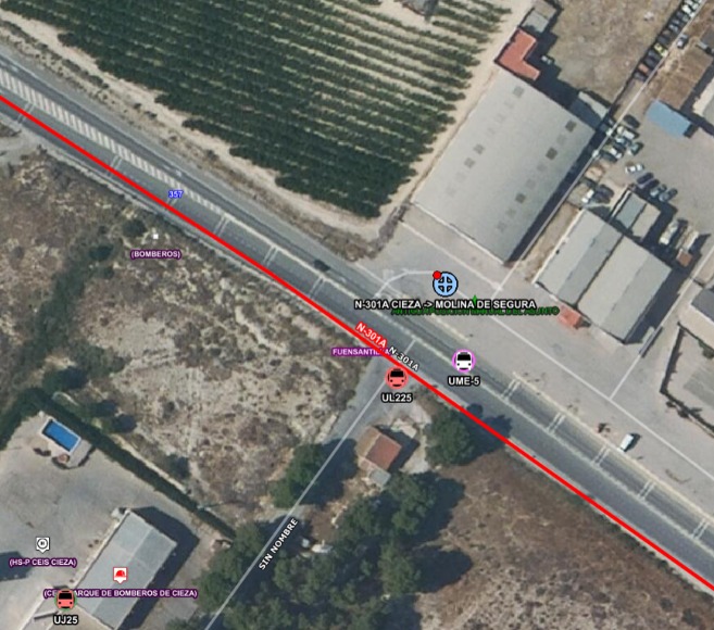 Servicios de emergencia han atendido y trasladado a un motorista herido en un grave accidente de tráfico en la N-301A, dirección Molina de Segura, Cieza.