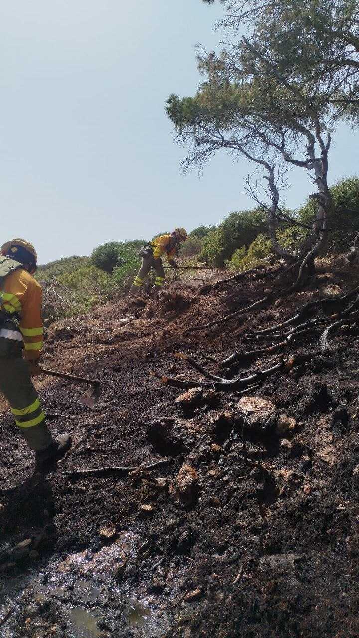 Fotografías facilitadas por agente medioambiental del punto concreto donde han tenido que intervenir en el incendio de la Algameca, Cartagena.
