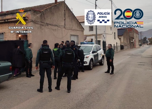 Murcia, 20 de diciembre de 2025. La Guardia Civil, la Policía Nacional y la Policía Local de Beniel, de forma conjunta, han llevado a cabo un amplio dispositivo en el municipio de Beniel, en materia de Prevención de Seguridad Ciudadana y Extranjería, que se ha saldado con más de una treintena de detenidos.