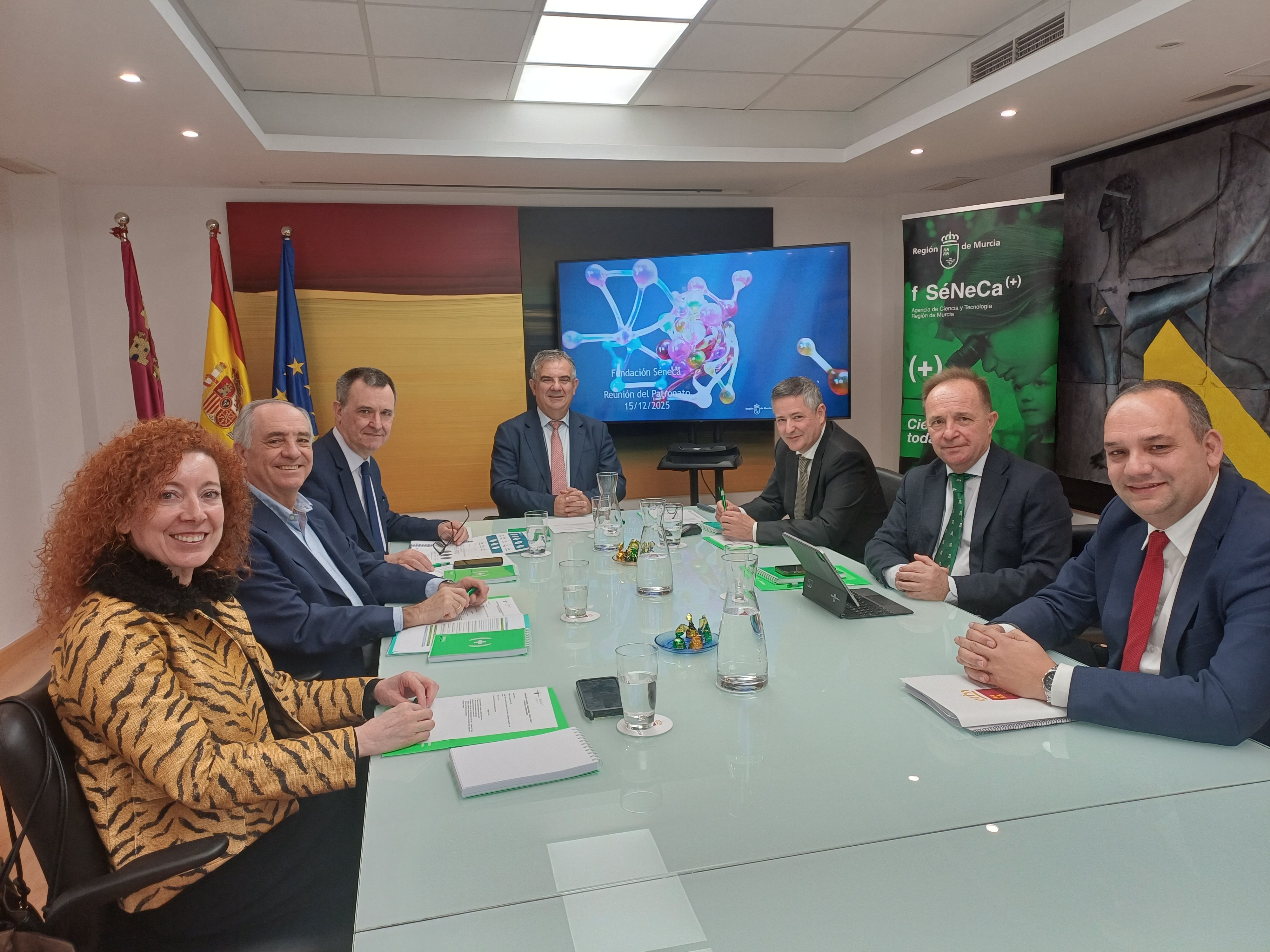 15.12.2025 La Consejería de Medio Ambiente, Universidades, Investigación y Mar Menor acogió hoy la reunión anual del Patronato de la Fundación Séneca, presidida por el consejero Juan María Vázquez, en la que se aprobó la memoria de actividades de 2025 y el plan de actuación para 2026.El encuentro permitió poner en valor el papel de la Fundación como motor del talento investigador y de la excelencia científica en la Región de Murcia, así como como instrumento estratégico al servicio del sistema regional de ciencia, tecnología e innovación.