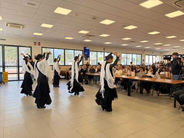Cartagena, 30/04/2026. El compás del flamenco ha marcado en el Campus de Cartagena de la UCAM el inicio de una colaboración que unirá cultura y gastronomía en torno a las XVI Jornadas Gastronómicas de la Fundación del Cante de las Minas, con una performance protagonizada por los bailarines de la escuela de danza de Nuria Más, que han interpretado distintos palos del flamenco en una actuación que ha despertado el entusiasmo del público asistente.