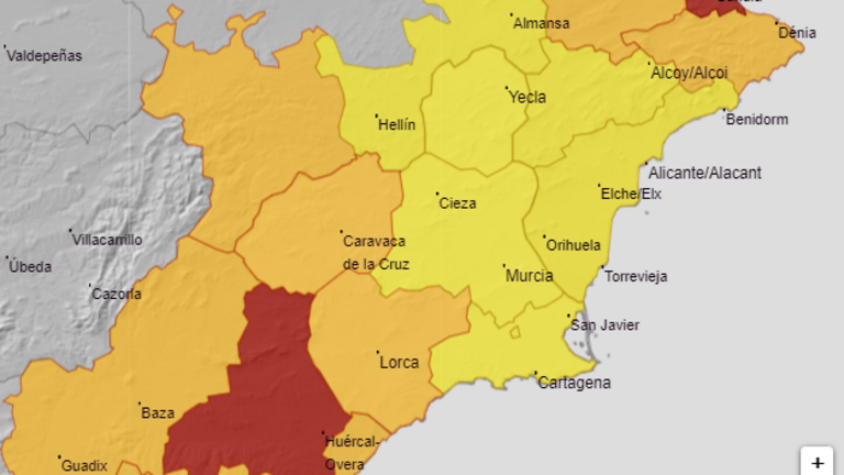 Meteorología actualiza aviso de fenómenos adversos por lluvias y tormentas en la Región de Murcia, y sitúa en nivel naranja Noroeste, Valle de Guadalentín, Lorca y Águilas. Redacción 14/dic/2025