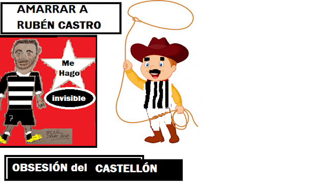 Pero en presente de indicativo, ya se vio y confirmó este fin de semana la obsesión del míster orellut Juan Carlos Garrido no era otra que la de amarrar deportivamente a una silla a Rubén Castro, para que el canario no se moviese. El preparador castellonense desde el pasado lunes ha estado sometiendo a los defensas marcadores de su plantilla a unas sesiones de rodeo a lazo, que les dio un especialista de la escuelas ecuestres de Texas y Arizona. Todo esto para echarle el guante y tener amarrado al mismo Rubén. Pero el pío pío fusiló al estar en el sitio cuando el portero de la Plana repeló un misil de