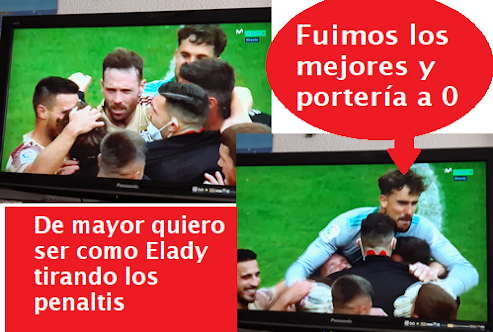 Enhorabuena a Elady, y desde mañana tres días de fiesta decretados por la alcaldesa, la pepera Virtudes Puerta, en su pueblo jienense de la Puerta del Segura. El aceitero sí que vio la puerta de Santamaría (!madre de Dios bendito!) que fue engañado por el maestro dorsal 11 con el estoque y el arte de siempre. Así que ya lleva siete dianas Eladi Zorrilla, a ver si pilla a su compi el pichichi. Mientras Rubén Castro hizo su trabajo en los 80 minutos que le dio el profesor Carrión. Y el caso es que Rubén y Elady no llegaron hoy a tiempo para rematar balones centrados, pasados, más de dos y más de tres, que pudieron ser goles.