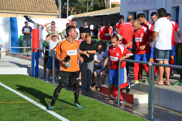 Los jugadores de la Minera se disponen a pisar el césped del campo Ángel Celdrán.